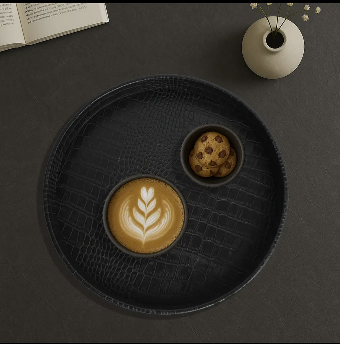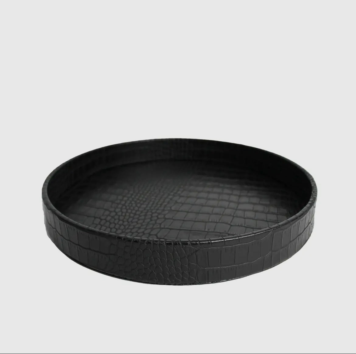 Rundes Tablett aus Kunstleder in Kroko-Optik – Stilvoll & vielseitig