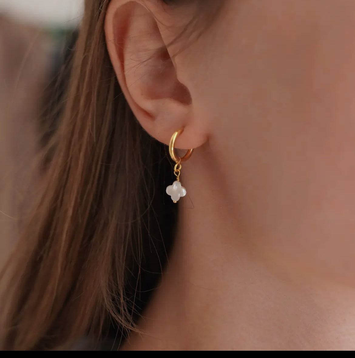 Kleine Edelstahl-Kreolen mit Perlmutt-Kleeblatt – Filigran & Elegant