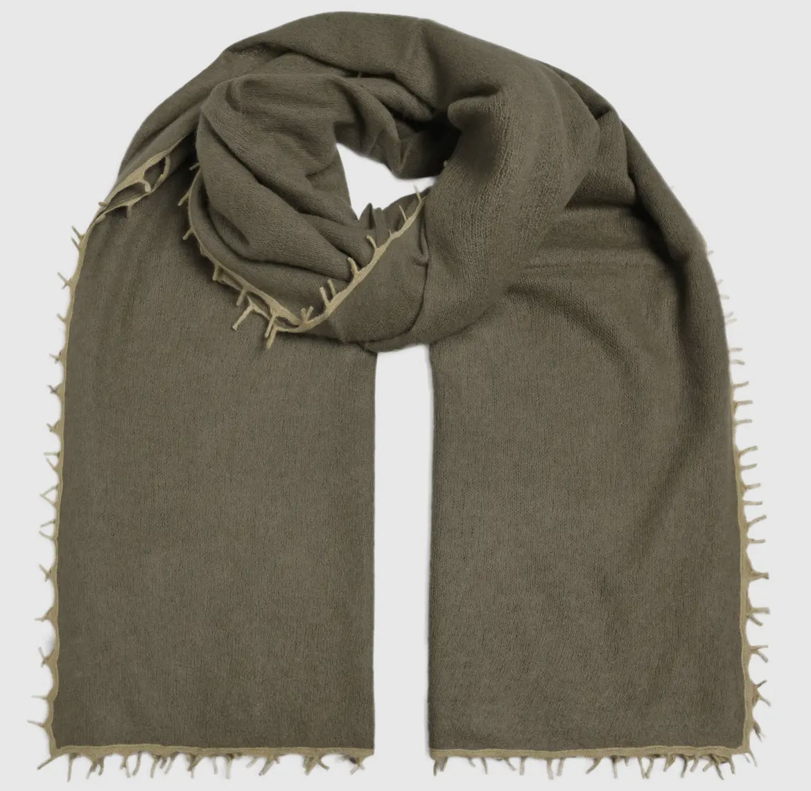 Kaschmir Tuch von Cute Stuff | Olive & Beige Fransen | Eleganter Damen Schal aus 100% Kaschmir