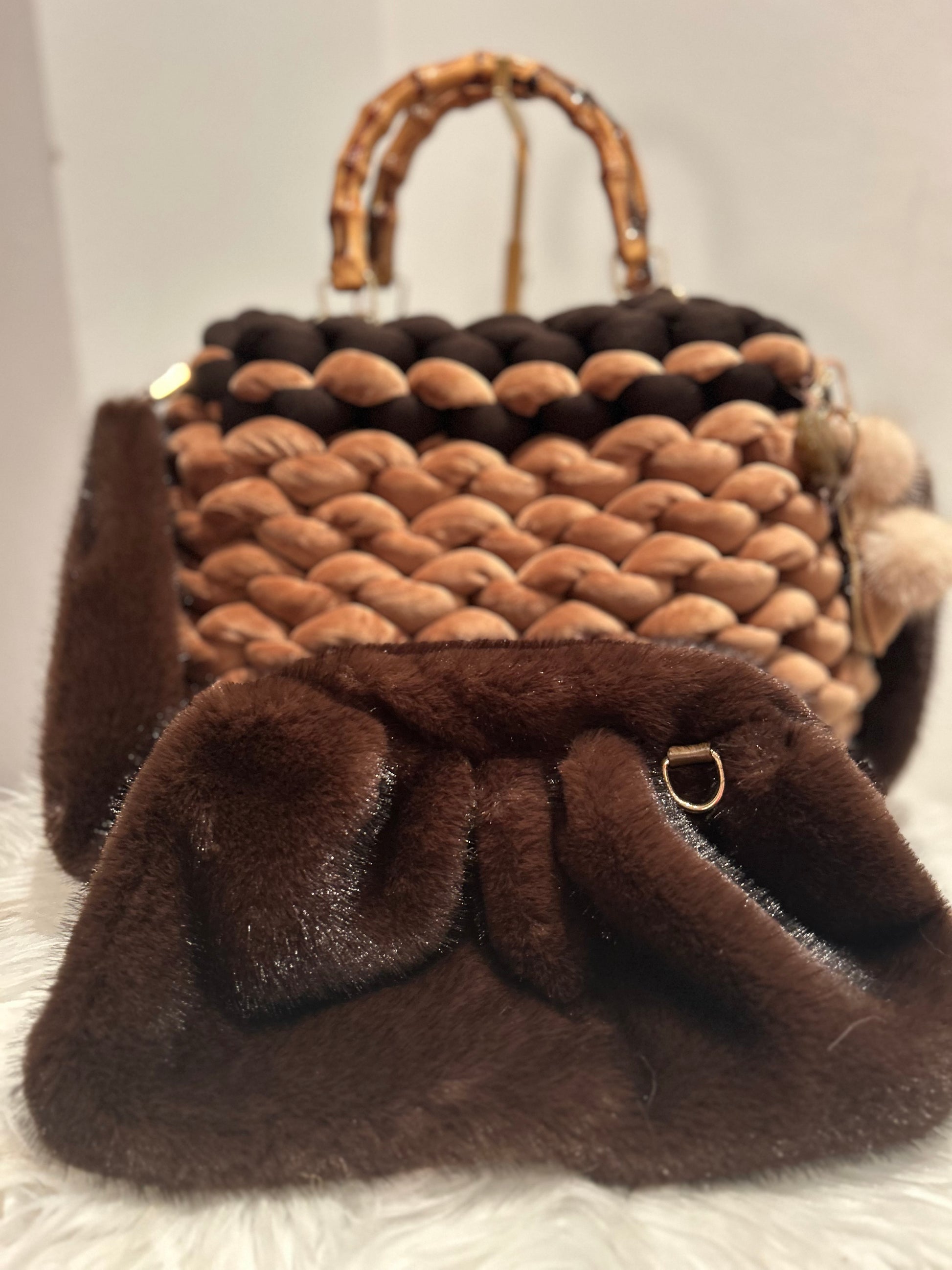 Pillow Bag Wave Terrosso & Schokobraun | Trendige Handtasche mit Bag-in-Bag aus Kunstpelz