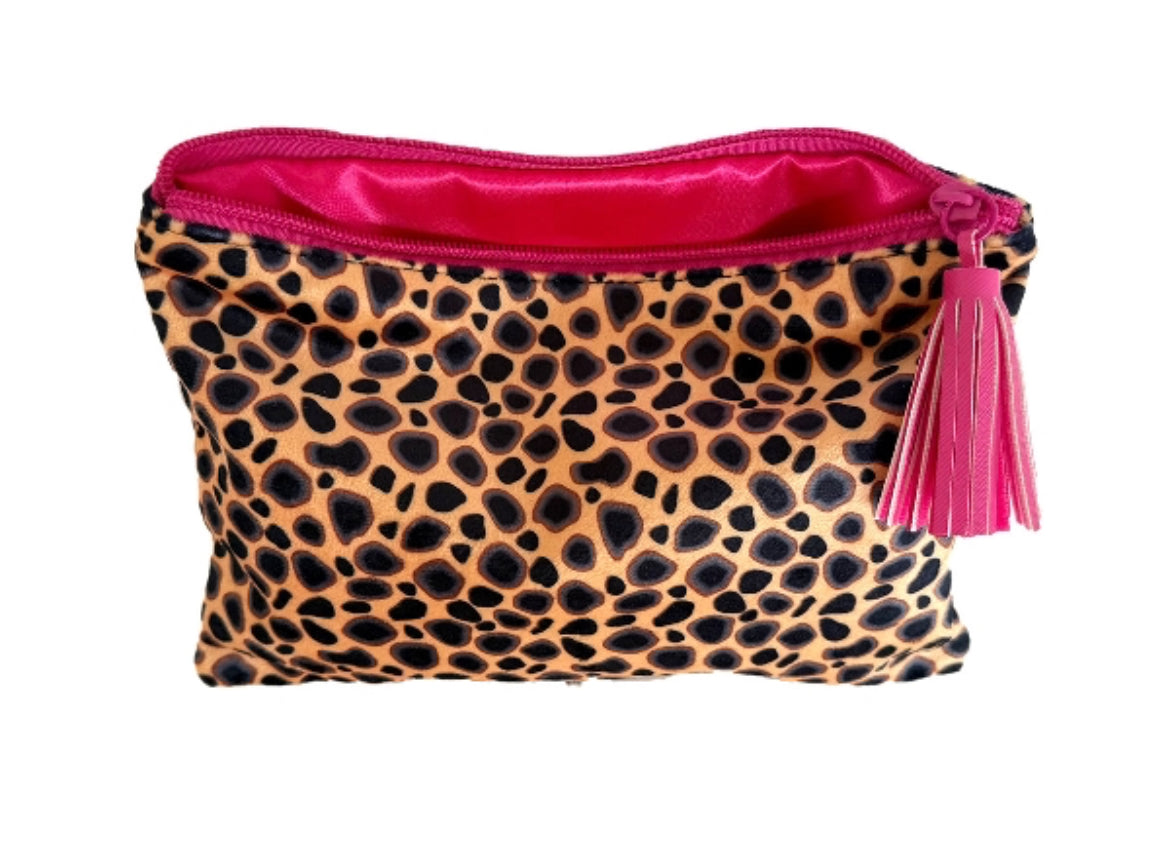 Die Samt-Pouch im angesagten Leo-Print setzt einen wilden, verspielten Akzent in deinem Alltag. Mit den Maßen 22,5 × 15,5 cm bietet sie genügend Platz für Essentials wie Handy, Schlüssel, Kosmetik oder Karten. Das luxuriöse Samtmaterial kombiniert mit dem trendigen Leo-Muster macht die Tasche zu einem echten Eyecatcher und verleiht jedem Look Persönlichkeit.
