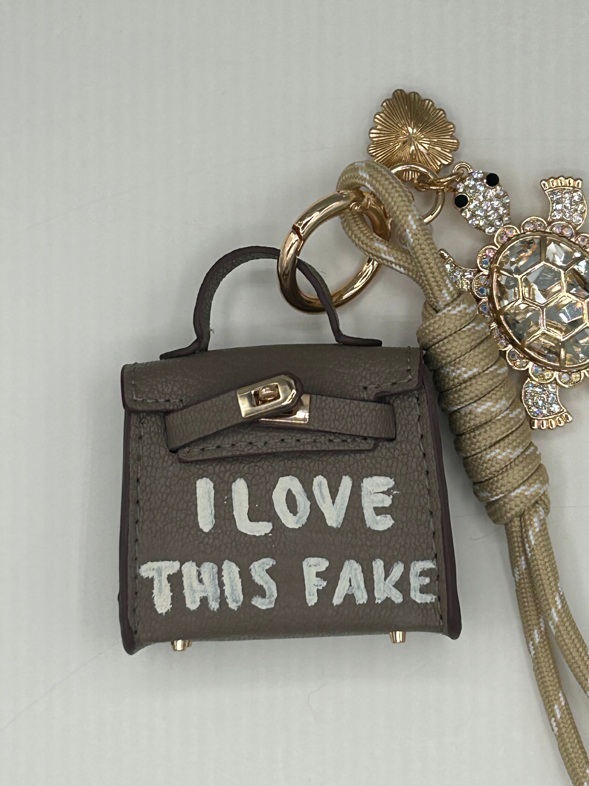 Ein kleines Accessoire, das sofort begeistert! Diese Minitasche im eleganten Taubeton eignet sich perfekt als Schlüsselanhänger oder stylischer Taschenanhänger. Die funkelnde Schildkröte setzt einen charmanten, auffälligen Akzent und macht jedes Stück besonders.