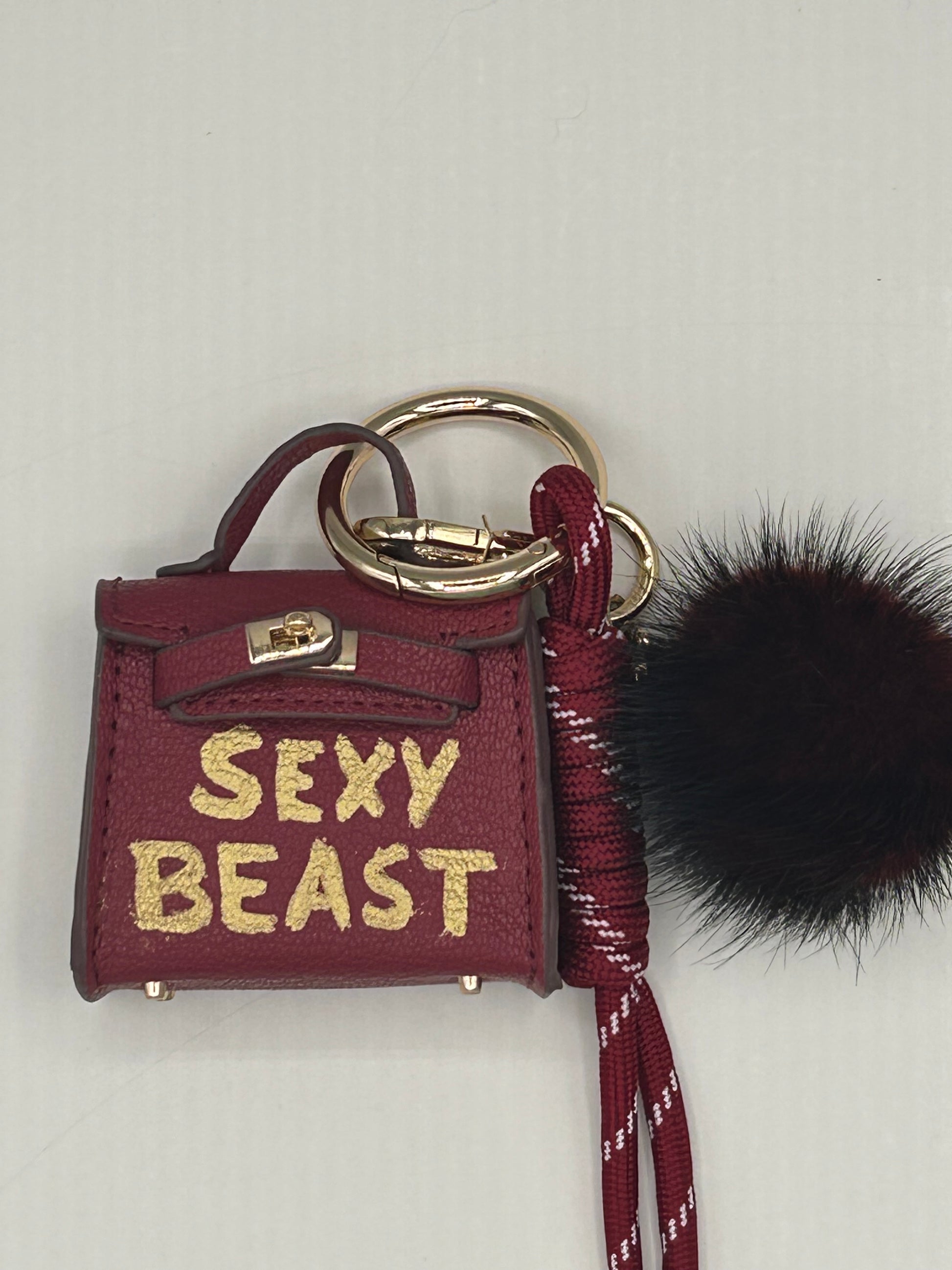 Ein kleines Accessoire mit großer Personality! Diese Minitasche in elegantem Bordeaux eignet sich perfekt als Schlüsselanhänger oder stylischer Taschenanhänger. Die Aufschrift „Sexy Beast“ verleiht ihr eine freche, moderne Note, während der kleine Fellpuschel für einen charmanten, verspielten Akzent sorgt.