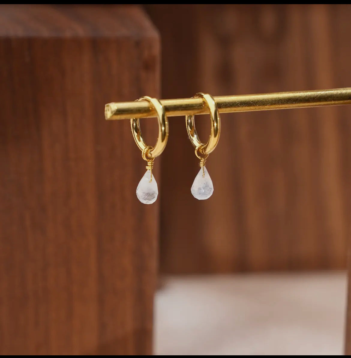 Diese tropfenförmigen Hängeohrringe vereinen filigranen Stil mit funkelndem Charme. Die Kreolen haben einen Durchmesser von 12 mm und sind mit einem Kristallanhänger (3 x 5 mm) versehen, der das Licht elegant reflektiert.